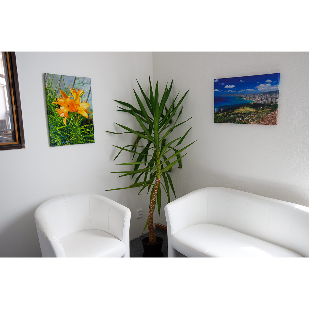 Zvěčni si neopakovatelný okamžik, vzpomínku na milovaného člověka nebo oblíbené místo pomocí fotoplátna, které si umístíš do obýváku. Plátno má díky své struktuře vynikající schopnost ukázat ty nejjemnější detaily, ale i kompenzovat případnou neostrost a nedostatečné rozlišení. Rám je při pohledu ze strany skrytý plátnem. Díky tomu tak přibude 2 cm obrazu navíc po celém obvodu na hraně rámu.